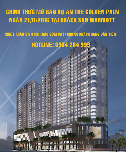 Hệ thống siêu thị dự án STDA thông báo lịch mở bán và chính sách chiết khấu cho 50 khách hàng đầu tiên đặt cọc mua căn hộ The Golden Palm Lê Văn Lương trước ngày 21/8/2016.